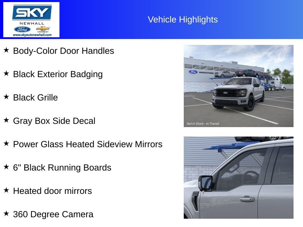 XLT 4WD, 18 Painted Aluminum Wheels, 360 Degree Camera, 400W Pro Power Onboard (cab & Bed), 6 Black Running Boards, Adaptive Cruise Control with Stop and Go, AEB Oncoming, Auto-Dimming Rear-View Mirror, Black Alloy Wheels, Black Exterior Badging, Black Grille, Body-Color Door Handles, Body-Color Front and Rear Bumpers, Brake assist, Chrome Front and Rear Bumpers, Cloth 40/20/40 Front Seat, Dark Interior Appliques, Dual-Zone Electronic Automatic Temperature Control, Equipment Group 302A Mid, Floor Shifter, Ford Co-Pilot360 Assist 2.0, Ford Connectivity Package (1-Year Included), Front Parking Sensors, Gray Box Side Decal, GVWR: 7,100 lbs Payload Package, Heated door mirrors, Heated Front Seats, Integrated Trailer Brake Controller, Intelligent Access with Push Button Start, Internet access capable: 5G Modem - Ford Connectivity Package, Power Glass Heated Sideview Mirrors, Power-Sliding Rear Window, Radio: AM/FM Stereo with SiriusXM 360L, Rear Parking Sensors, Rear window defroster, Remote keyless entry, Remote Start System with Remote Tailgate Release, Split folding rear seat, Steering wheel audio controls, SYNC 4 with Enhanced Voice Recognition, Tow/Haul Package, Towing Technology, Unique Sport Cloth 40/Console/40 Front-Seats, Wheels: 18 Gloss Black, Wrapped Steering Wheel, XLT Black Appearance Package. Price includes: $2000 - Retail Customer Cash. Exp. 03/31/2026