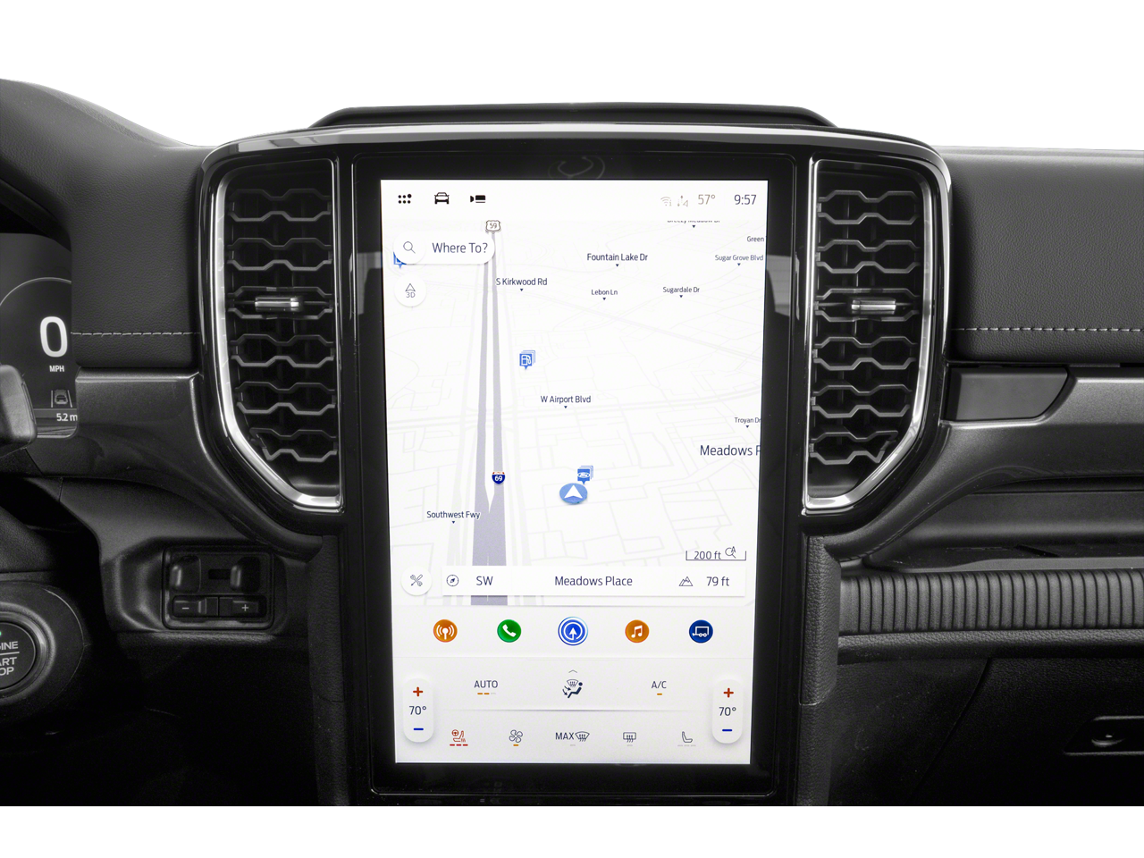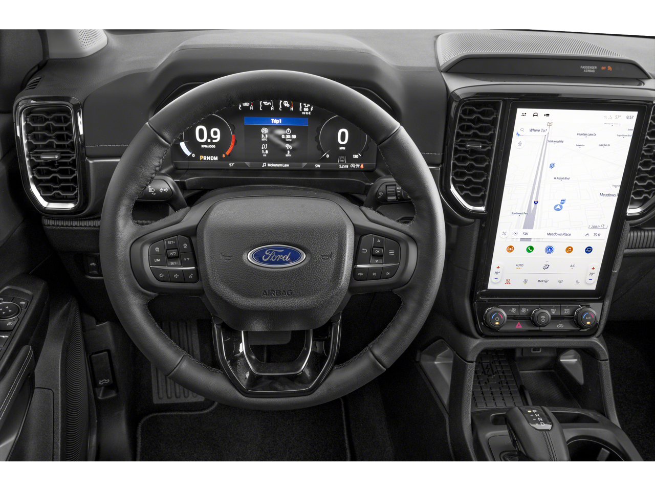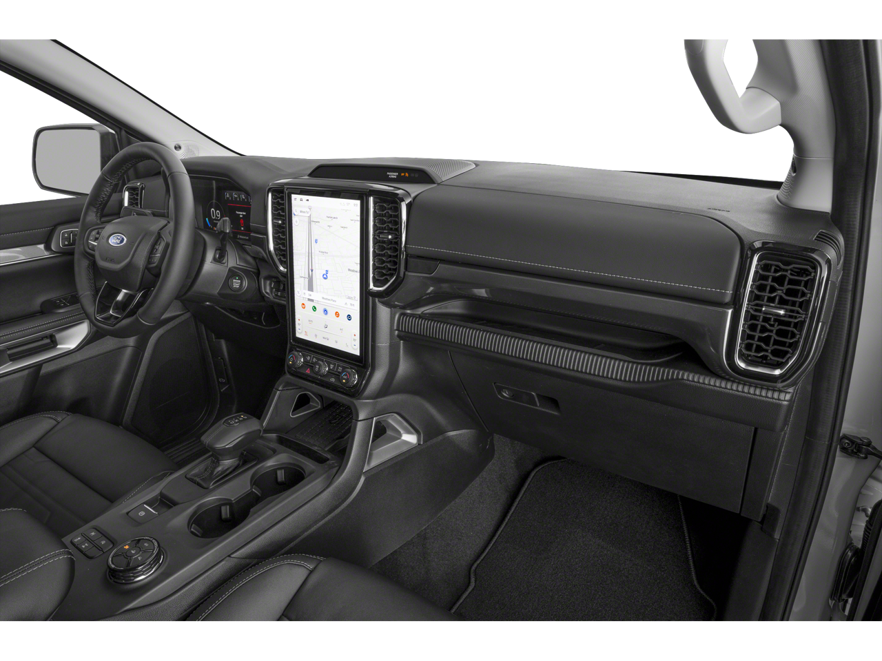 Inside, the Ranger Lariat offers an inviting and upscale cabin designed with both driver and passengers in mind. High-quality materials, comfortable seating, and smart technology create a space that feels more like a well-equipped SUV than a traditional truck. The interior is quiet, spacious, and built to keep you connected and comfortable whether you're commuting to work, heading out on a road trip, or towing gear for your next project.
