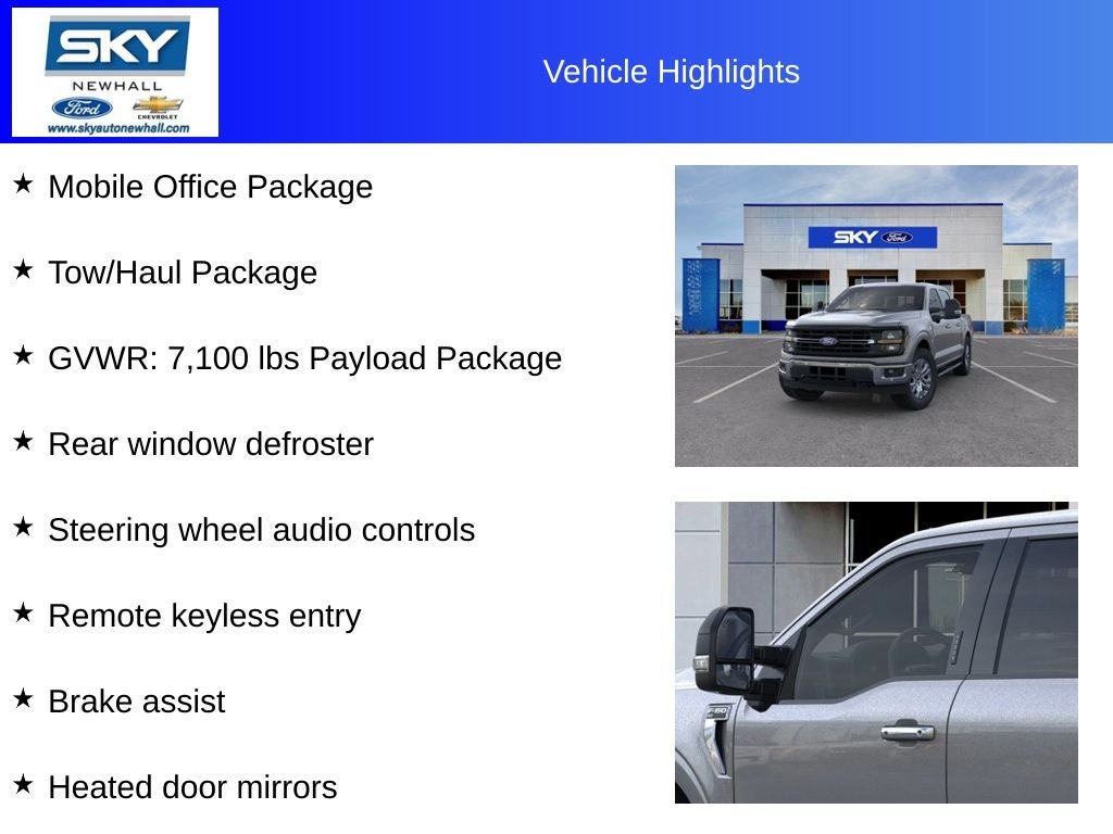 XLT 4WD, Black Alloy Wheels, Brake assist, Cloth 40/Console/40 Front Seats, Console Worksurface, GVWR: 7,100 lbs Payload Package, Heated door mirrors, Integrated Trailer Brake Controller, Mobile Office Package, Partitioned Lockable Rear Storage, Rear window defroster, Remote keyless entry, Split folding rear seat, Steering wheel audio controls, Tow/Haul Package. Discount available on eligible purchases when you finance through a participating preferred lender and trade in a 2016 or newer vehicle with fewer than 75,000 miles. Customers using outside financing or manufacturer special APR programs (including 0%) are not eligible. All financing subject to credit approval and program availability. Offer valid through Exp. 02/27/2026. See dealer for details Discount available on eligible purchases when you finance through a participating preferred lender and trade in a 2016 or newer vehicle with fewer than 75,000 miles. Customers using outside financing or manufacturer special APR programs (including 0%) are not eligible. All financing subject to credit approval and program availability. Offer valid through Exp. 02/28/2026. See dealer for details Discount available on eligible purchases when you finance through a participating preferred lender and trade in a 2016 or newer vehicle with fewer than 75,000 miles. Customers using outside financing or manufacturer special APR programs (including 0%) are not eligible. All financing subject to credit approval and program availability. Offer valid through Exp. 01/31/2031. See dealer for details