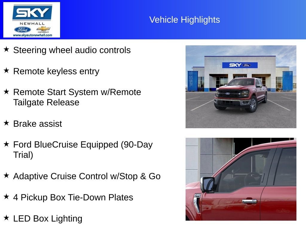 XLT 4WD, 4 Pickup Box Tie-Down Plates, 400W Cab & Bed Outlets, Adaptive Cruise Control w/Stop & Go, Auto-Dimming Rear-View Mirror, Bed Utility Package, Black Alloy Wheels, Brake assist, Cloth 40/Console/40 Front Seats, Console Worksurface, Equipment Group 302A Mid, Ford BlueCruise Equipped (90-Day Trial), GVWR: 7,100 lbs Payload Package, Heated door mirrors, Heated Front Seats, Integrated Trailer Brake Controller, Intelligent Access w/Push Button Start, LED Box Lighting, Mobile Office Package, Partitioned Lockable Rear Storage, Power Glass Heated Sideview Mirrors, Power-Sliding Rear Window, Rear window defroster, Remote keyless entry, Remote Start System w/Remote Tailgate Release, Speed Sign Recognition, Split folding rear seat, Steering wheel audio controls, Tailgate Step w/Tailgate Work Surface, Tow/Haul Package. Discount available on eligible purchases when you finance through a participating preferred lender and trade in a 2016 or newer vehicle with fewer than 75,000 miles. Customers using outside financing or manufacturer special APR programs (including 0%) are not eligible. All financing subject to credit approval and program availability. Offer valid through Exp. 02/27/2026. See dealer for details Discount available on eligible purchases when you finance through a participating preferred lender and trade in a 2016 or newer vehicle with fewer than 75,000 miles. Customers using outside financing or manufacturer special APR programs (including 0%) are not eligible. All financing subject to credit approval and program availability. Offer valid through Exp. 02/28/2026. See dealer for details Discount available on eligible purchases when you finance through a participating preferred lender and trade in a 2016 or newer vehicle with fewer than 75,000 miles. Customers using outside financing or manufacturer special APR programs (including 0%) are not eligible. All financing subject to credit approval and program availability. Offer valid through Exp. 01/31/2031. See dealer for details
