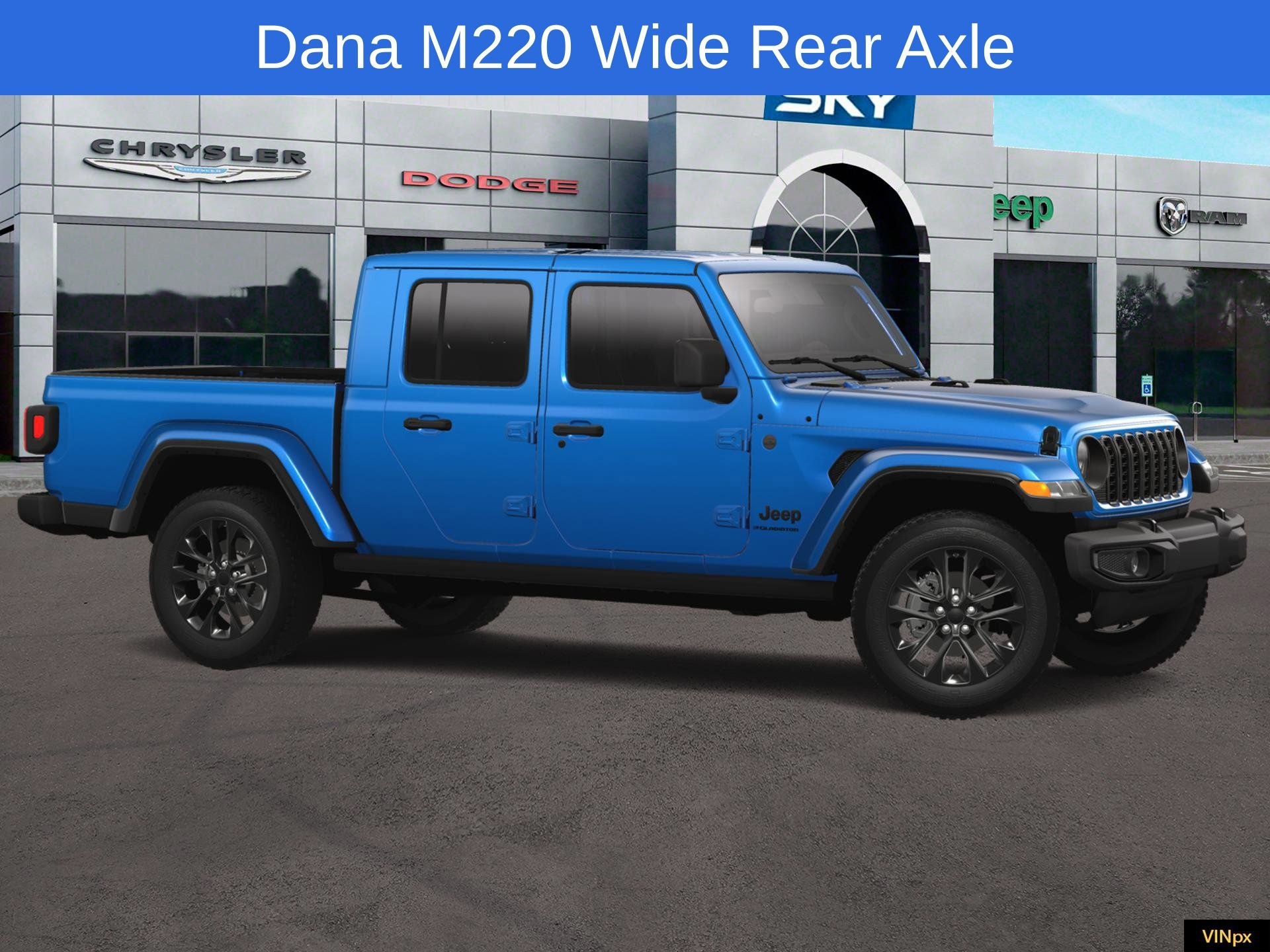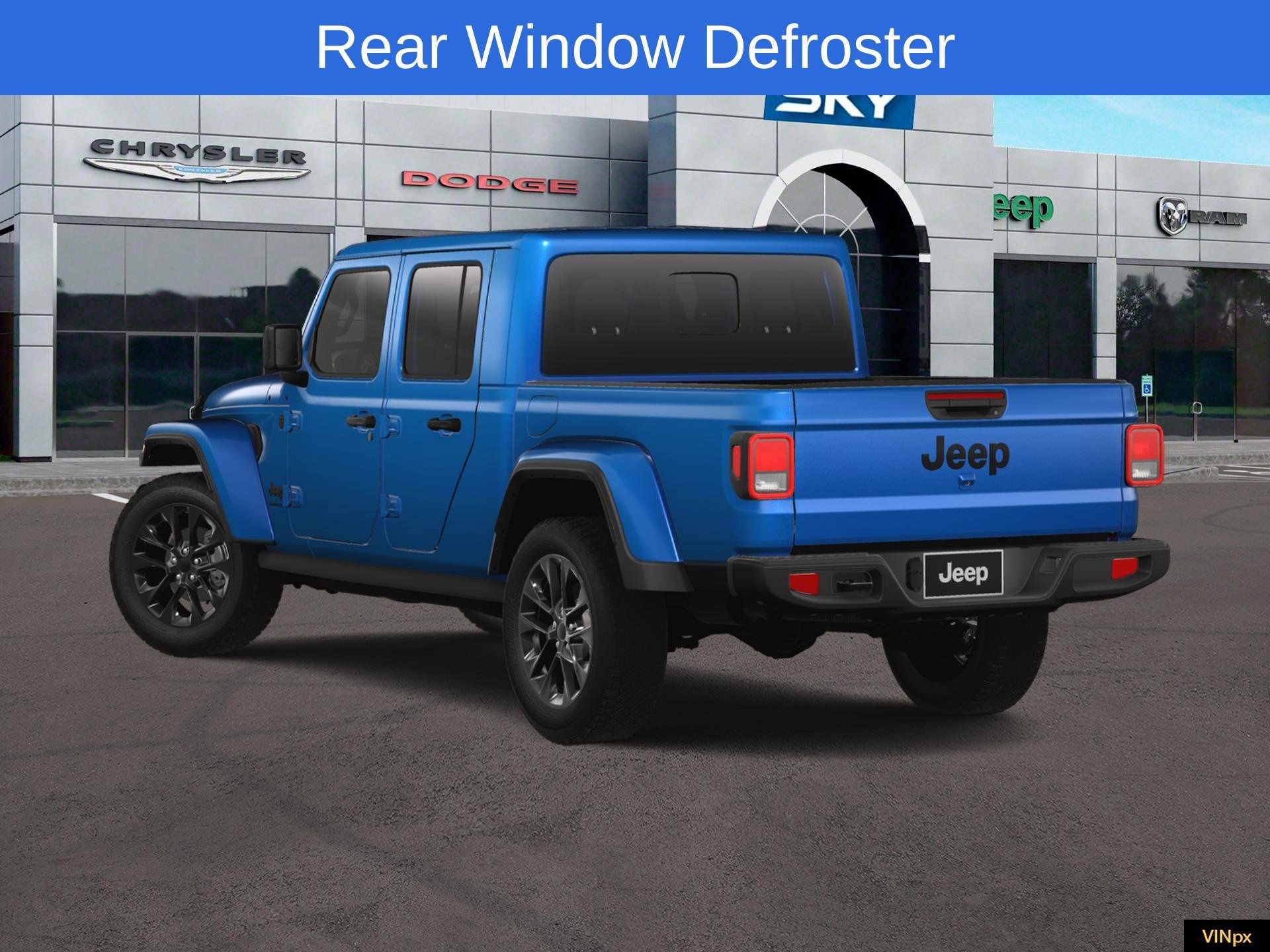 Hydro Blue Pearlcoat 2025 Jeep Gladiator Nighthawk 4WD 8-Speed Automatic 3.6L V6 24V VVT 110 MPH Vehicle Max Speed Calibration, 4G LTE Wi-Fi Hot Spot, Anti-Spin Differential Rear Axle, Apple CarPlay/Android Auto, Body Color Fender Flares (2-Piece), Brake assist, Dana M210 Wide Front Axle, Dana M220 Wide Rear Axle, Daytime Running Lamp System, Deep Tint Sunscreen Windows, Mold In Color Bumper w/Gloss Black, ParkView Rear Back-Up Camera, Power Heated Mirrors, Protection Sill Rails, Quick Order Package 24X Night Hawk (DISC), Rear Window Defroster, Remote keyless entry, Sport Rear Shock Absorbers, Sport Suspension (DISC), Steering wheel mounted audio controls, Wheels: 20 x 8 Painted Black Aluminum (DISC). Price includes: $1250 - 2025 National Retail Bonus Cash . Exp. 02/02/2026 $1500 - 2025 National Stellantis Loyalty Retail Bonus Cash . Exp. 02/02/2026 Discount available on eligible purchases when you finance through a participating preferred lender and trade in a 2016 or newer vehicle with fewer than 75,000 miles. Customers using outside financing or manufacturer special APR programs (including 0%) are not eligible. All financing subject to credit approval and program availability. Offer valid through Exp. 01/31/2030. See dealer for details Discount available on eligible purchases when you finance through a participating preferred lender AND trade in a 2016 or newer vehicle with fewer than 75,000 miles. Customers using outside financing or manufacturer special APR programs (including 0%) are not eligible. All financing subject to credit approval and program availability. Offer valid through Exp. 01/30/2031. See dealer for details