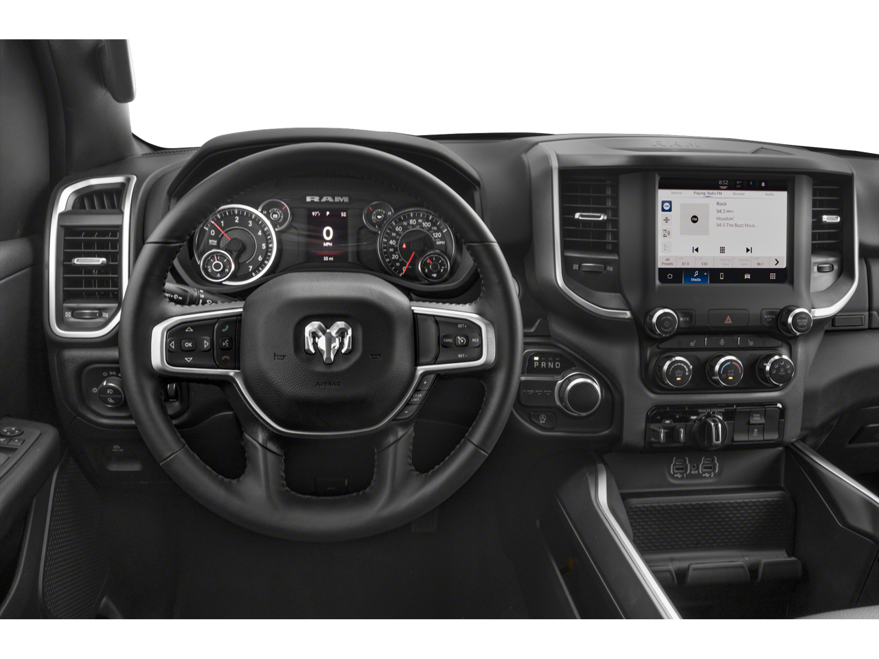 115V Auxiliary Power Outlet, 2nd Row In Floor Storage Bins, 3 Rear Seat Head Restraints, 400W Inverter, 4G LTE Wi-Fi Hot Spot, 9 Amplified Speakers w/Subwoofer, Accent Color Door Handles, Accent Color Premium Power Mirrors, Air Conditioning ATC w/Dual Zone Control, Alloy wheels, Anti-Spin Differential Rear Axle, Apple CarPlay, Auto-Dimming Exterior Driver Mirror, Auto-Dimming Rear-View Mirror, Big Horn Badge, Big Horn Level B Equipment Group, Black Exterior Truck Badging, Black Headlamp Bezels, Black Interior Accents, Black Painted Exterior Mirrors Caps, Black Premium Power Mirrors, Body Color Front Bumper, Body Color Rear Bumper w/Step Pads, Brake assist, Class IV Receiver Hitch, Cluster 7.0 TFT Color Display, Convex Wide-Angle Exterior Mirror Insert, Deluxe Cloth Bucket Seats, Dual Exhaust w/Black Tips, Exterior Mirrors Courtesy Lamps, Exterior Mirrors w/Heating Element, Exterior Mirrors w/Supplemental Signals, Front Fog Lamps, Glove Box Lamp, Grille Surround 1 Black Texture 2 Black, Heated door mirrors, Heated Front Seats, Heated Steering Wheel, Leather steering wheel, LED Footwell Lighting, Media Hub w/2 Charge Only USBs, Night Edition, ParkSense Front/Rear Park Assist w/Stop, ParkView Rear Back-Up Camera, Power 2-Way Driver Lumbar Adjust, Power 8-Way Driver Seat, Power Adjustable Pedals, Power-Folding Mirrors, Quick Order Package 27Z Big Horn, Radio: Uconnect 5 Nav w/12.0 Display, RAM Grille Badge - Black, Rear Dome w/On/Off Switch Lamp, Rear Power Sliding Window, Rear Window Defroster, Remote keyless entry, Remote Start System, Security Alarm, SiriusXM Satellite Radio, Split folding rear seat, Steering wheel mounted audio controls, Sun Visors w/Illuminated Vanity Mirrors, Universal Garage Door Opener, Wheels: 20 x 9.0 Premium Paint/Polished. Granite Crystal Metallic Clearcoat 2024 Ram 1500 Big Horn/Lone Star 4WD 8-Speed Automatic HEMI 5.7L V8 Multi Displacement VVT eTorque