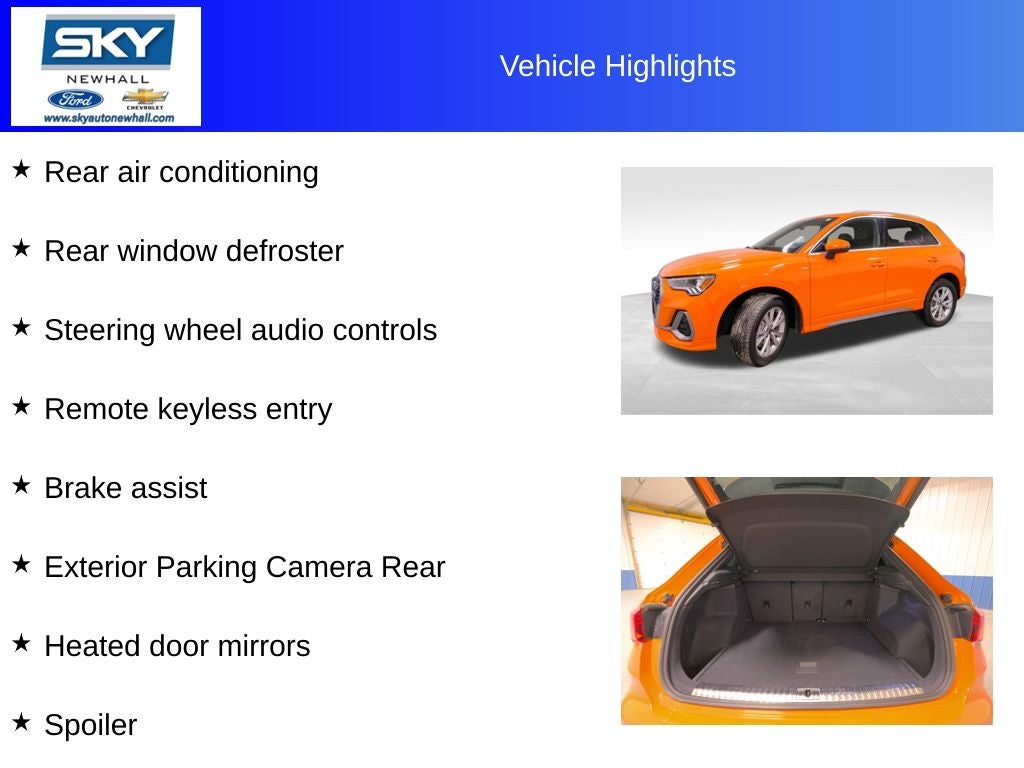 Behind the wheel, the Q3 Premium delivers a smooth, confident ride with responsive handling that makes driving feel effortless. Audi’s signature attention to detail shows up in the quiet cabin, advanced technology, and seamless connectivity that help keep you informed and entertained without distraction. Safety and peace of mind are built into every drive, giving you confidence no matter where the road takes you.